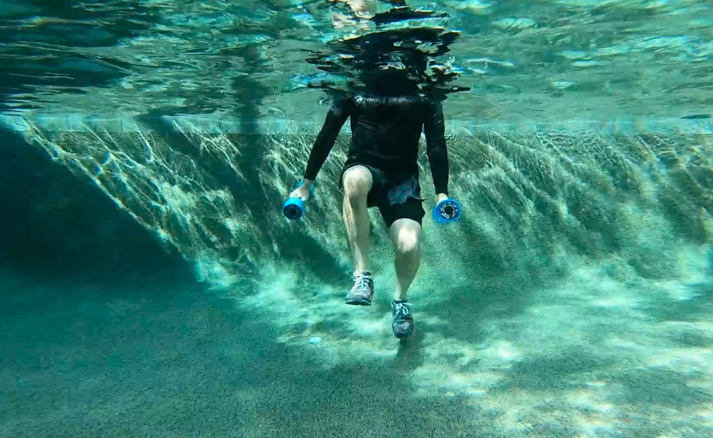 In chest-deep water, your body becomes lighter and, you guessed it, the pressure through your knee reduces significantly.